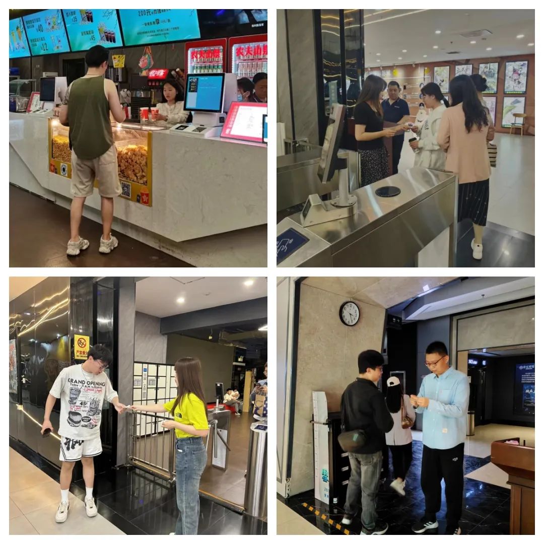 “五一”假日期间,本部青年职工代表,前去金棕榈东尚影城、嘉豪影城建华店等影院,开展了志愿服务。
