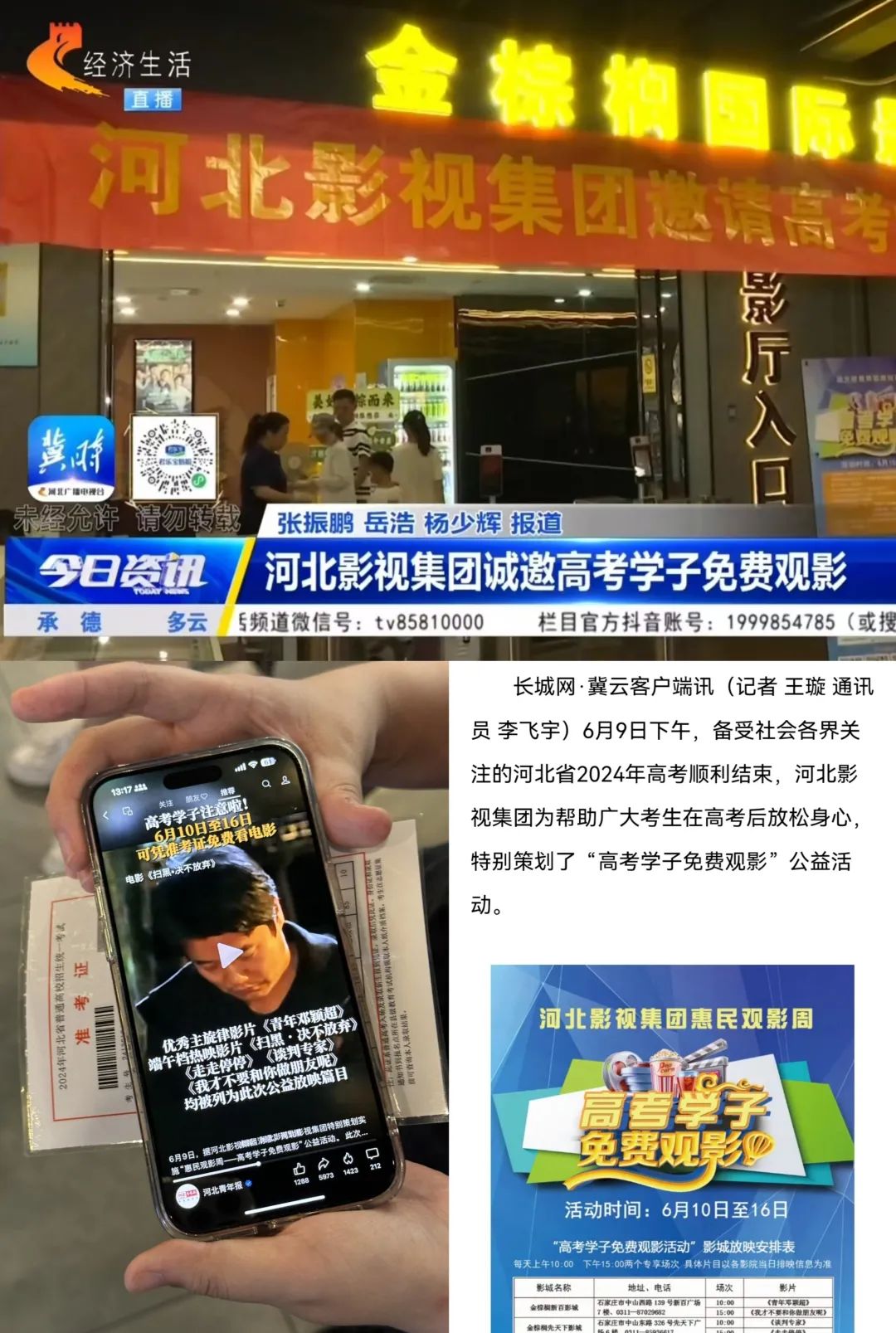 6月16日,河北影视集团“惠民观影周——高考学子免费观影”活动圆满收官。