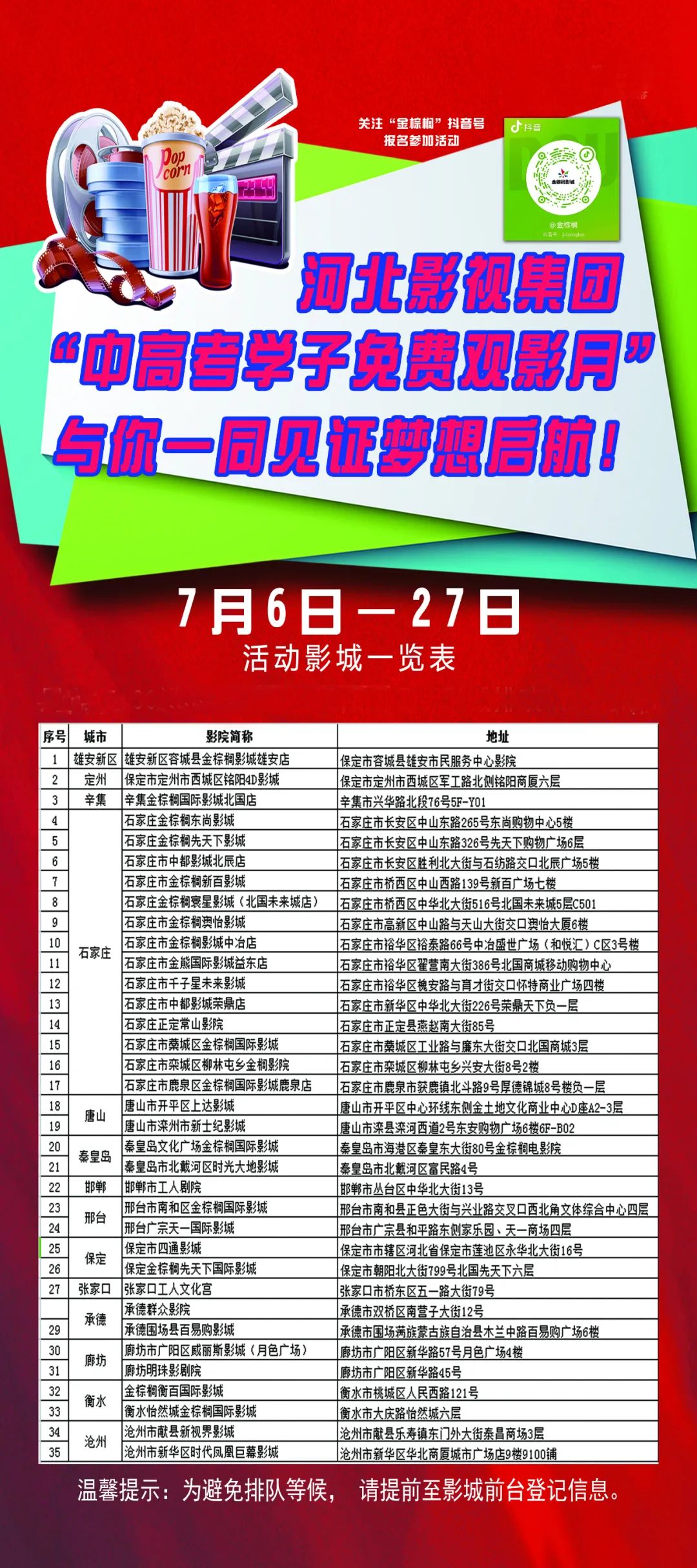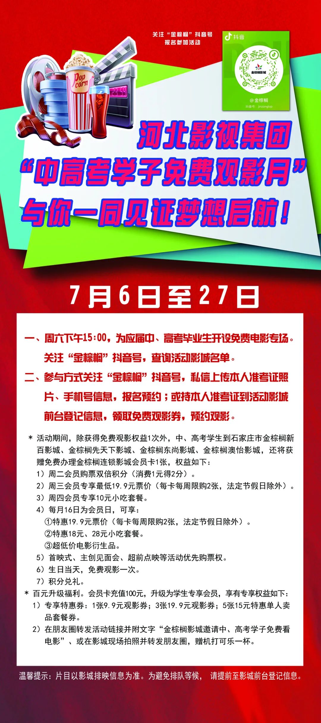 河北影视集团“中高考学子免费观影月”活动细则