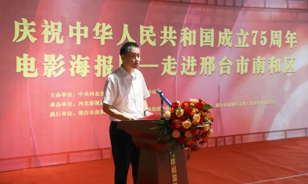 7月25日上午,“庆祝中华人民共和国成立75周年电影海报展”在邢台市南和区文体综合中心金棕榈影城隆重启幕。中共河北省委宣传部电影处处长袁桂华,河北影视集团董事长、党委书记高磊,邢台市委宣传部常务副部长薄国纯等领导出席了揭幕仪式。