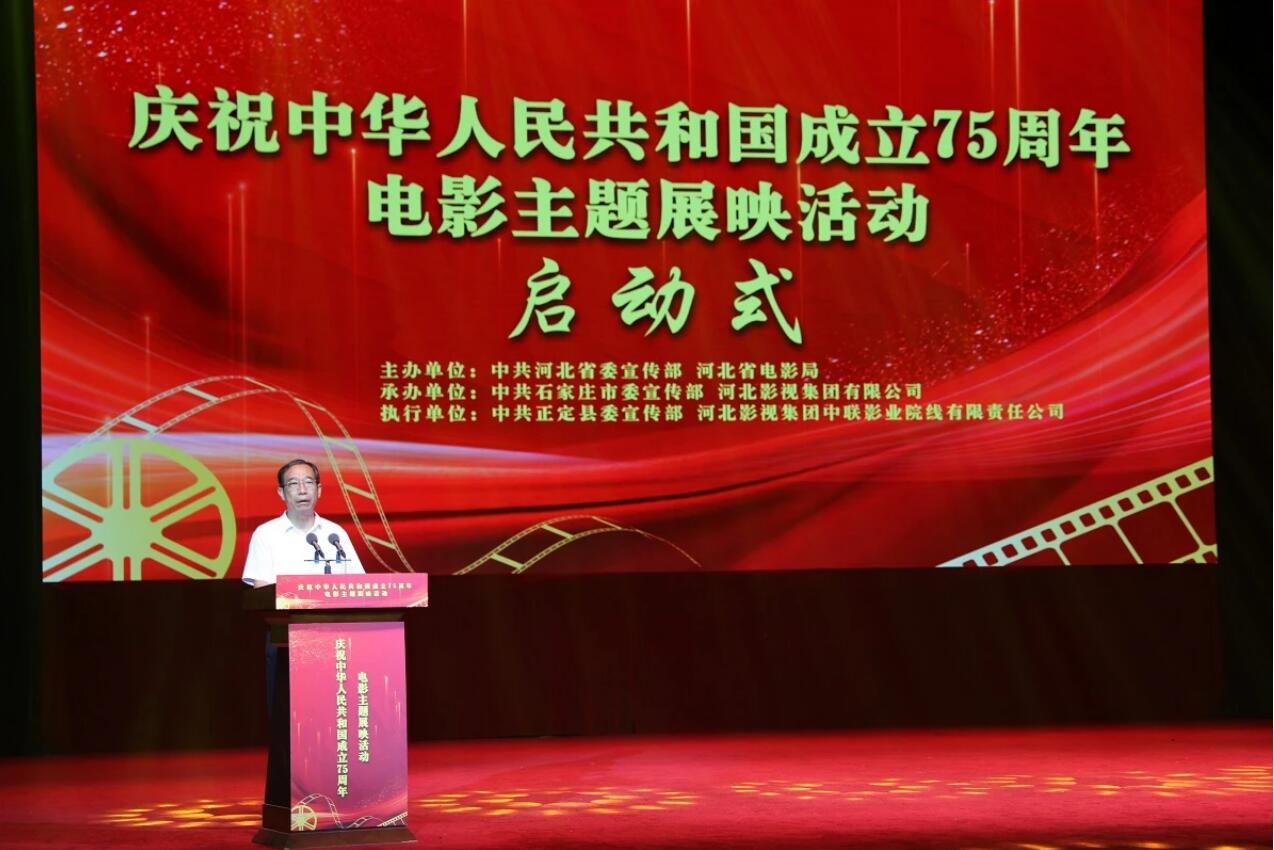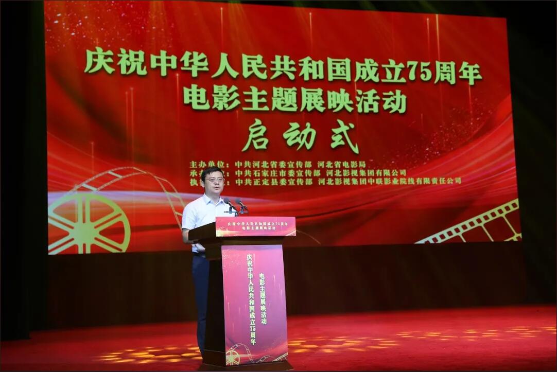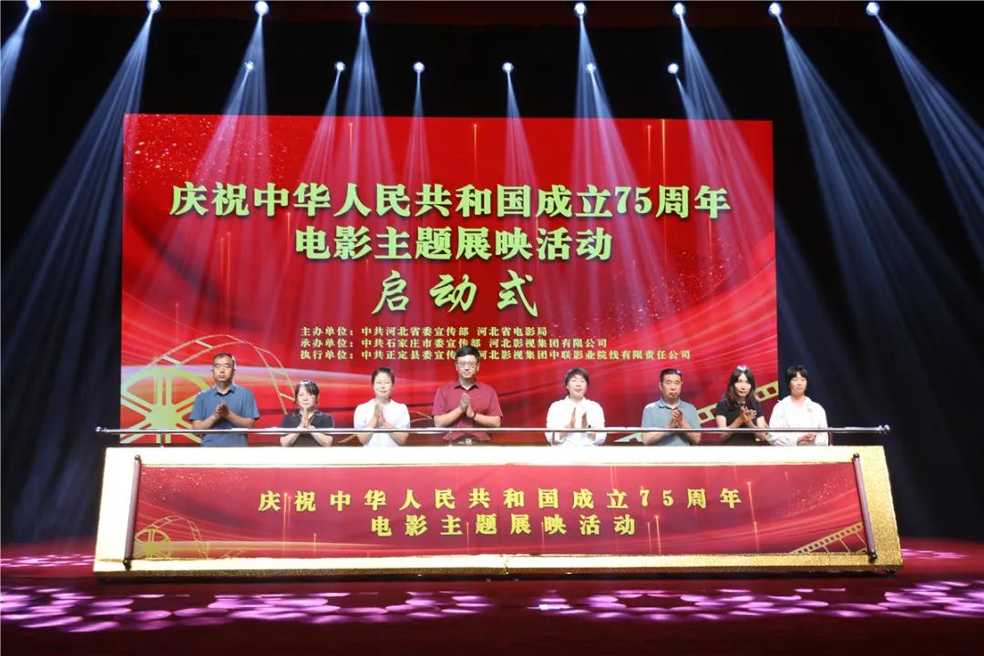 8月13日,由中共河北省委宣传部、河北省电影局主办的“庆祝中华人民共和国成立75周年电影主题展映活动”启动式在石家庄正定常山影剧院举办,基层党组织代表、基层老党员代表、社区工作者代表、企业员工代表、学生代表、电影工作者代表及机关干部代表共同为活动启幕。