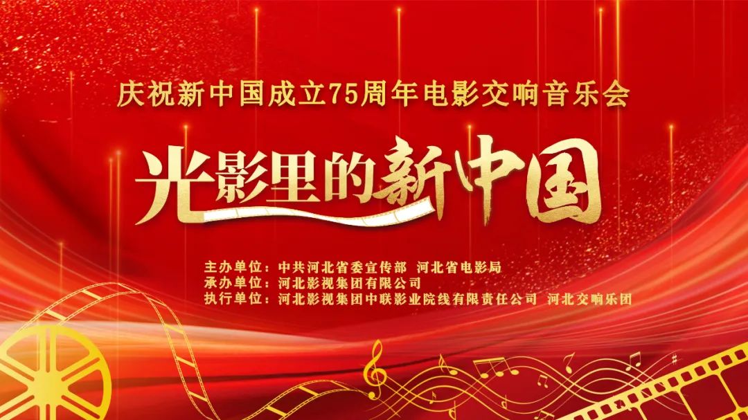 为庆祝新中国成立75周年,发挥电影光影育人、培根铸魂作用,河北省委宣传部、河北省电影局将分别于9月10日(星期二)19:30在雄安会展中心、9月13日(星期五)19:30在石家庄大剧院举办两场“光影里的新中国——庆祝新中国成立75周年电影交响音乐会”。