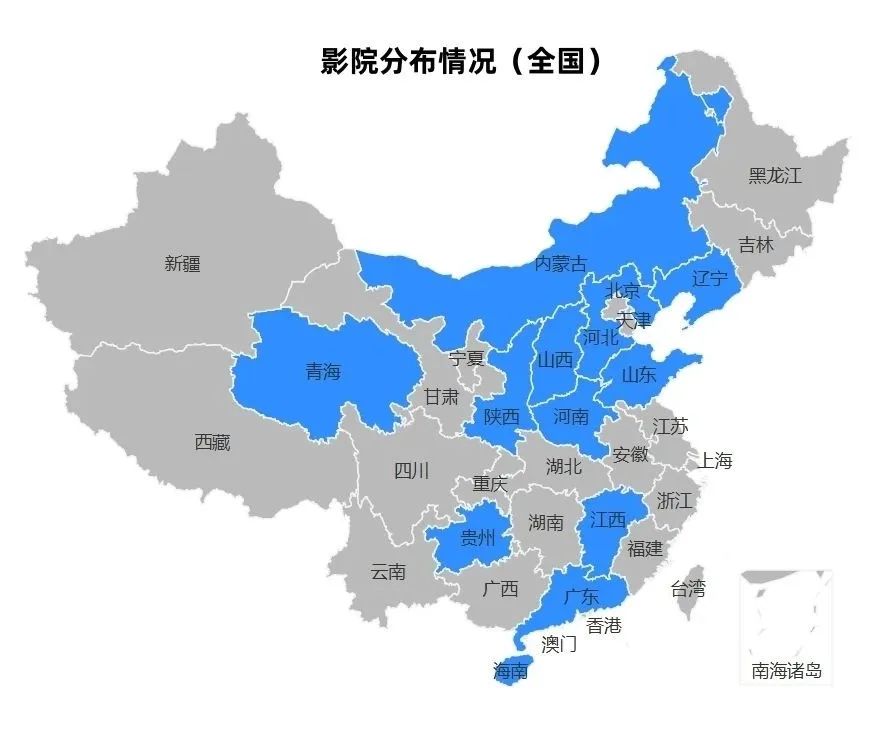 河北影视集团中联院线是全国首批组建成立的跨省城市院线,秉持“立足本省、稳步拓展”的发展理念,在深耕本省市场的同时,稳步拓展省外市场。截止目前,旗下影院总数已达280家,银幕总数1338块;2024年累计新拓展影院33家,新增银幕174块。近年来,加快省外市场拓展步伐,先后成功进驻内蒙古、山东、陕西、广东、海南、辽宁、青海、江西、贵州、河南、山西等省外电影市场。