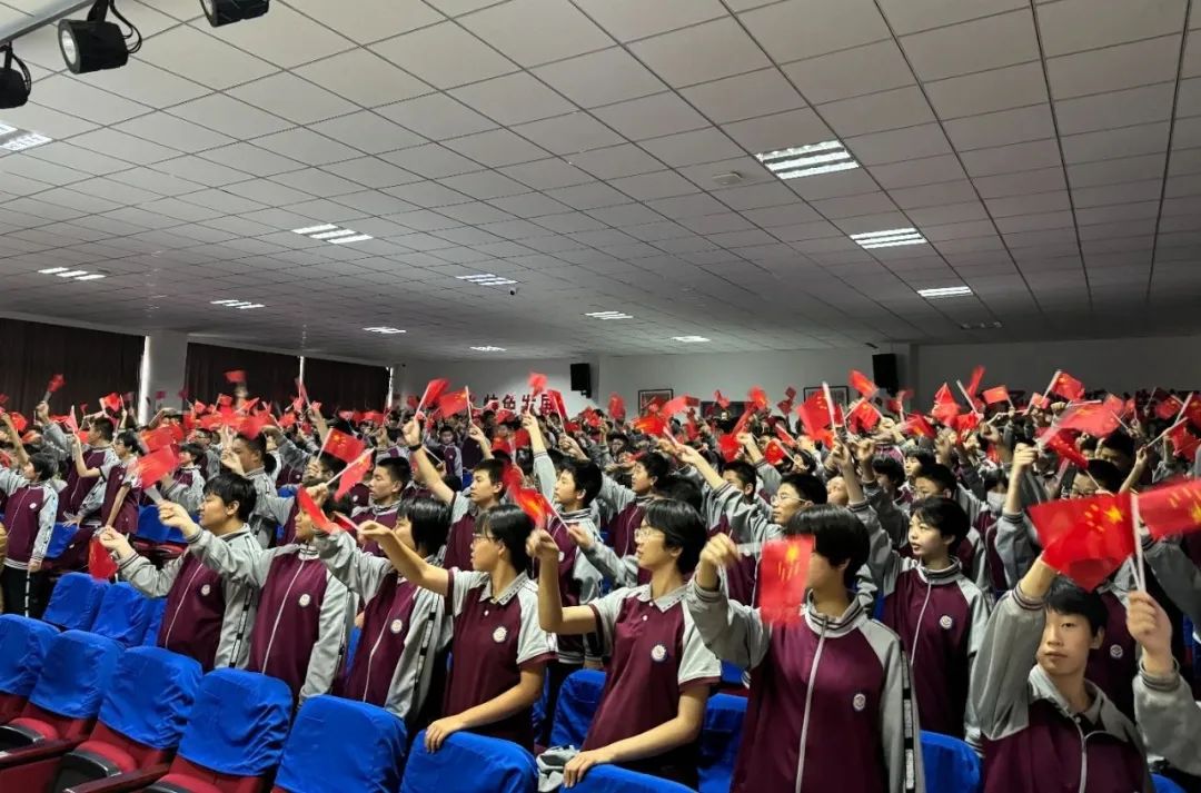 电影放映前,近400名师生合唱了歌曲《我和我的祖国》,以歌声表达爱国情怀,现场气氛十分热烈。