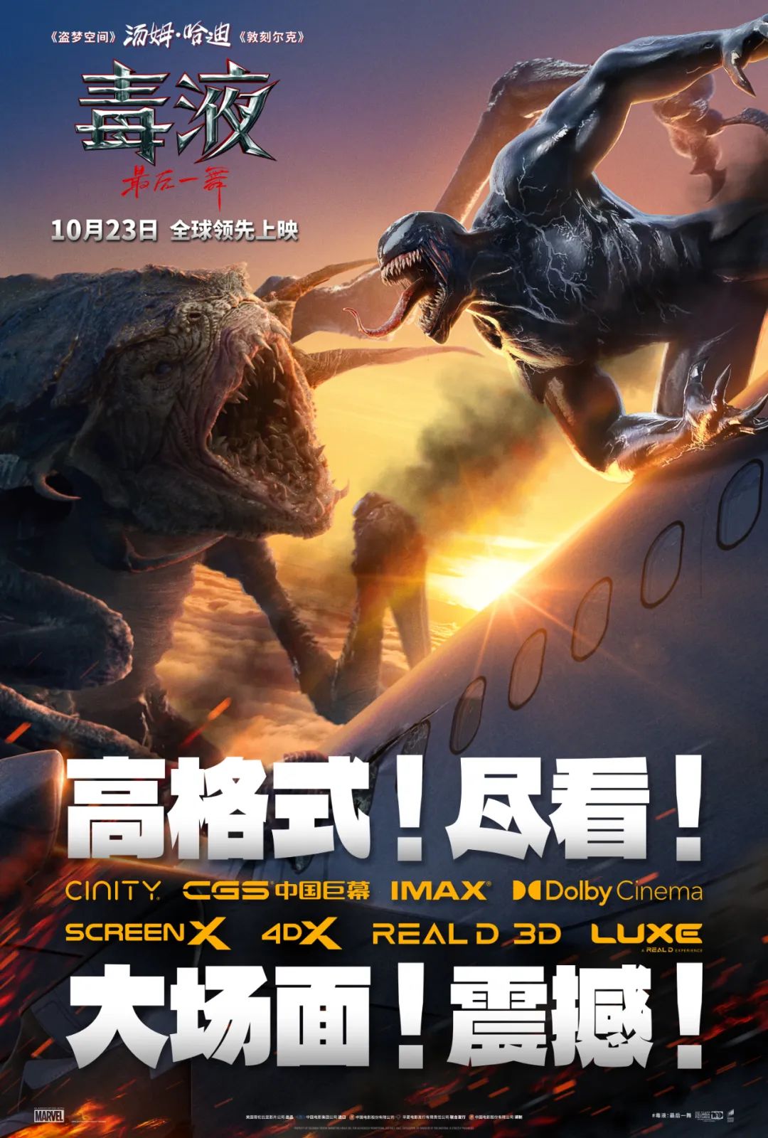 2018年,《毒液:致命守护者》以18.7亿元的国内票房和强劲的口碑表现力,让毒液脱颖而出,成为了备受影迷喜爱的超级IP。时隔六年,系列终章《毒液:最后一舞》在观众的期盼中再度归来,外星共生体毒液与宿主埃迪迎接全新挑战。影片在视效场面上进行了颠覆性升级,除了毒液多种炫酷的流体作战形态,场面也从暗黑的监狱血拼,开阔到上天入水的海陆空作战,全方位开大,而密集的特效更是经费在燃烧,势必会带给观众更宏大、更震撼、更极致的视听体验,敬请期待!