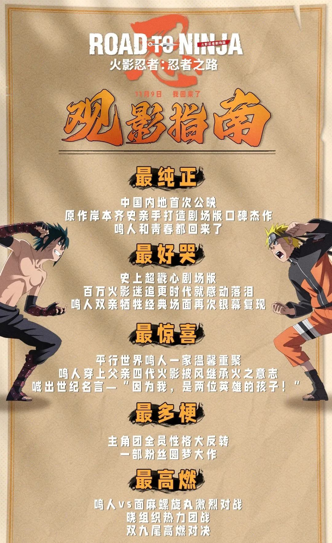 作为《火影忍者》系列的重要作品,国内粉丝对《火影忍者剧场版:忍者之路》也期盼已久。11月9日,让我们在大银幕上,再次感受那份属于火影的热血与感动。