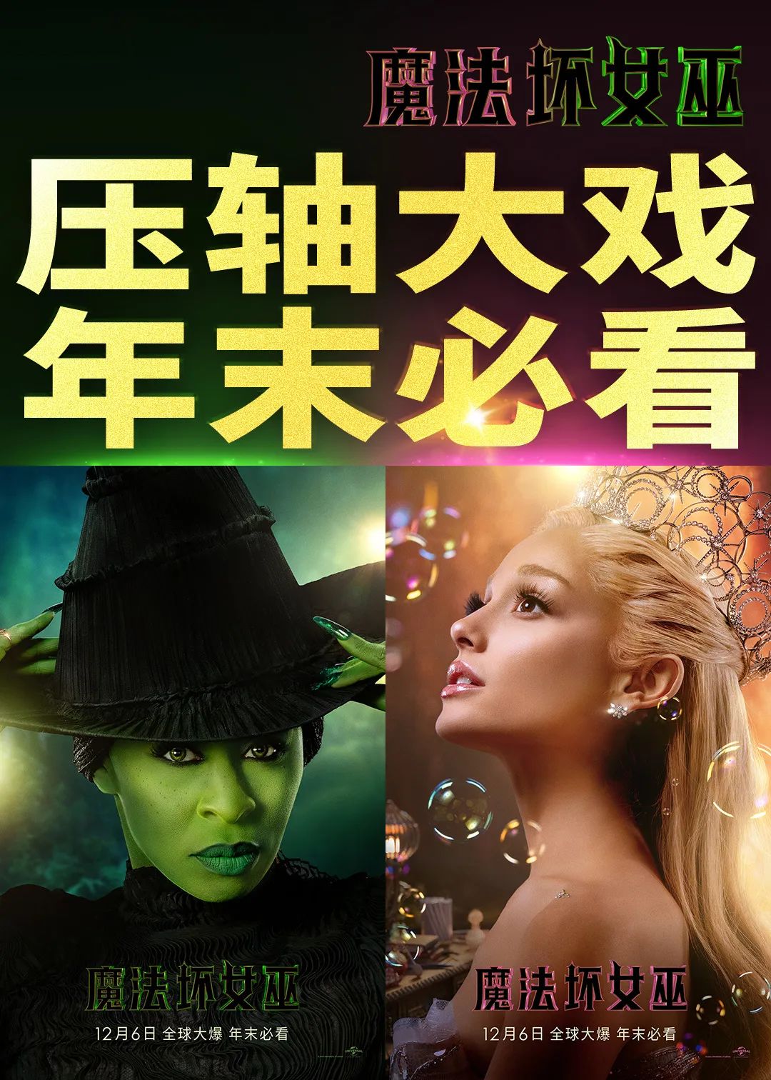 《魔法坏女巫》12月6日全国上映,魔法国度开启在即,艾美奖、格莱美奖得主辛西娅·埃里沃和流行音乐天后“A妹”阿里安娜·格兰德联袂主演“相爱相杀”,奥斯卡影后杨紫琼火力全开加入战团。