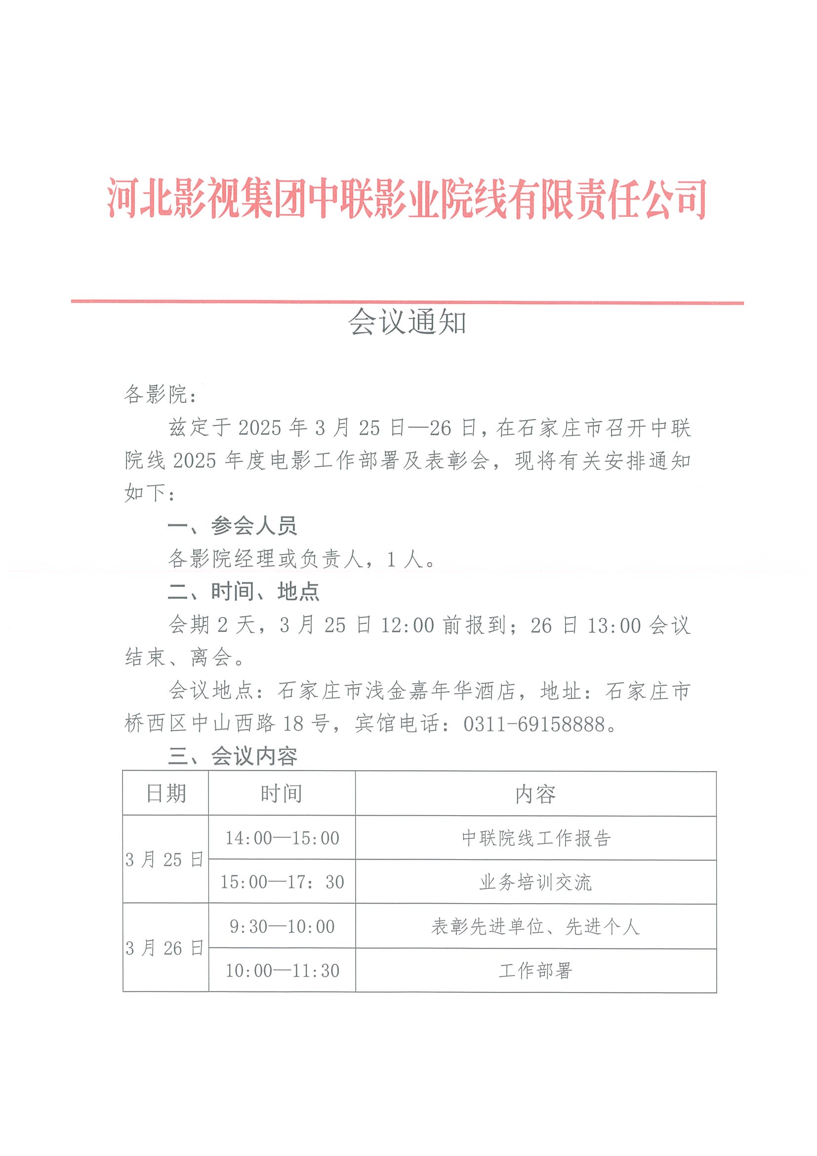 河北影视集团中联院线2025年度电影工作部署及表彰会
